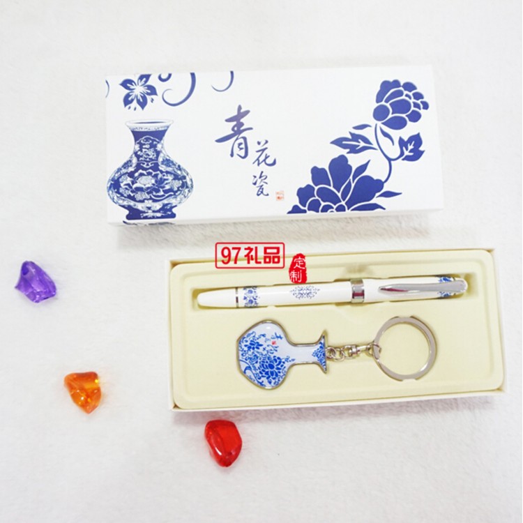 青花笔钥匙扣2件套