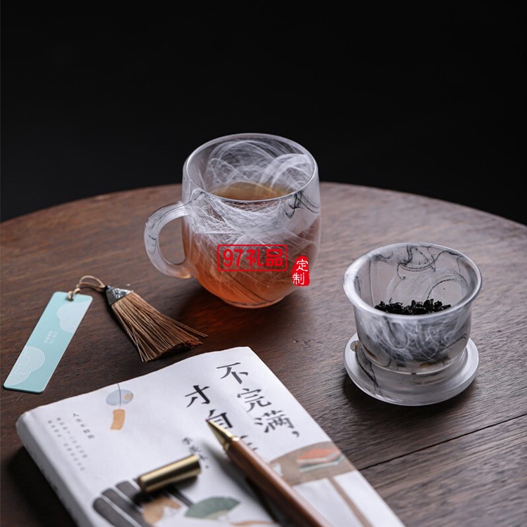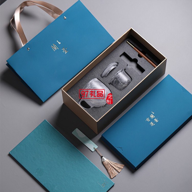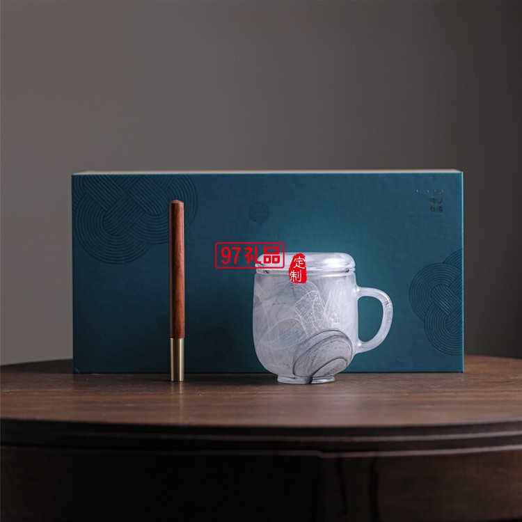 高端商务礼品圆融琉璃杯书签红木笔套装