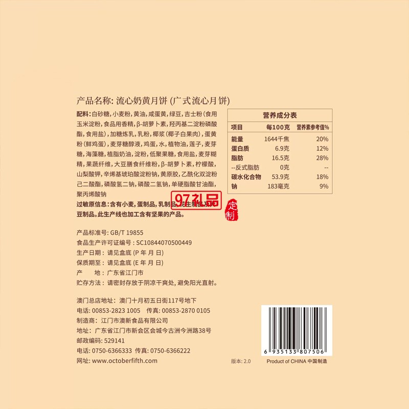 流心奶黄月饼*8枚